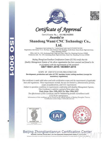 SHANDONG WAMI CNC TECHNOLOGY CO.LTD is the professional manufacturer of water jet cutting machine in China, and we supply various stone machinery, laser machines. another business is about lifting tools like winches, hoists and cranes. we also supply abrasive sand and spare parts for all Chinese brand water jet cutting machine. Our factory is located in JINAN city, SHAN DONG province, China.About our water jet cutting machine, we have 420mpa and 600Mpa series intensifier pump and have 350Mpa direct drive pump. We also can provide 3 axis, 5 axis with 10 degree and dynamic 5 axis water jet cutting machine with pure water cutting and abrasive sand cutting. we can also do special design according to customer's demand.Our machine is with excellent quality, efficient and accuracy, economical investment with low initial cost and low maintenance cost to our customers, All the machinery delivered by us come with first class after-sale service. All machines are with one year (2000 hours) warranty of main parts, whole-life after -service .We can supply water jet cutting machine according to customer's request, from the cutting table size to the special design. Especially our new design automatic abrasive sand removing system bring convenience for glass and marble and metal cutting factories, this system can fit for any brand water jet cutting machine. You needn't stop the machine while it is working.Our new ECL cutting head can improve you 10% cutting efficiency, and our new technology can make the machine moving speed to 15-30m/min so that reduce you 20-50% cutting cost according to the materials.until now, we have after-service department in America, Russia, South Africa, Ecuador,UK, Argentina, Chile.Mexico,Australia,Vietnam.We can also provide laser machines and other CNC machines with factory price. we also export electirc hoist, air hoist, air winch, electric winch, hydraulic winch with factory price and all cooperated factories manufacturing experience are more than 15 years.please don't hesitate to contact us for details!
